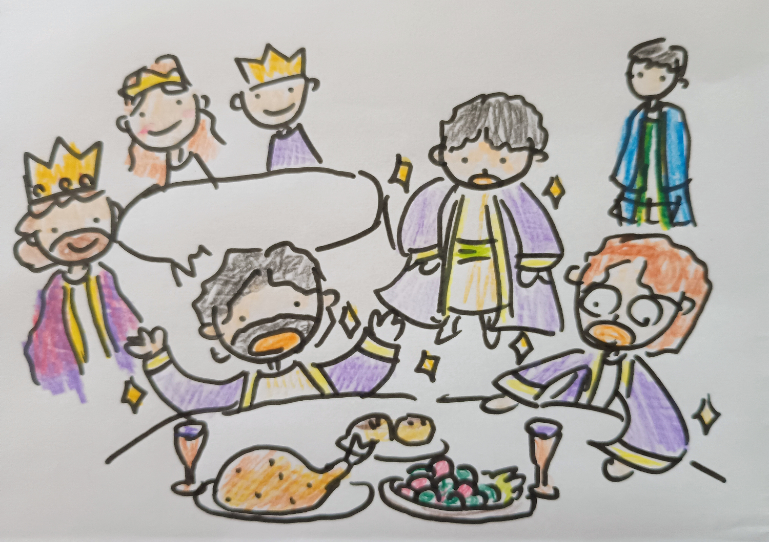 王子の婚礼の祝宴として表される天国に、だれでも、良い人でも悪い人でも、招かれるのです。そして、礼服は、祝宴にふさわしい服は与えられるのです。祝宴に入る条件は唯一つ、貧しい身なりの上からでもよいのです、用意された礼服を纏うことでした。